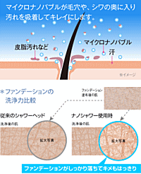 ナノシャワーとは、超微細な空気を含んだ水を作り出すシャワーシステムのこと。